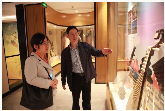 林丽平一行观赏了民族乐器陈列馆展示的精品民族乐器并欣赏了企业旗下新艺民族室内乐团的演出排练。馆藏的乐器嫁接了不同的工艺元素,其中不乏与其他领域的非遗技艺进行创新融合,备具文化价值。乐团改编演奏的小提琴曲《查尔达什舞曲》与二胡独奏曲《葡萄熟了》将东西方的经典旋律生动演绎,展示了民乐的独特魅力。