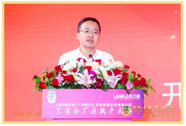 活动伊始,由开封市委常委、兰考县委书记陈维忠,中国乐器协会专职副理事长孙瑞勇,以及上海新集体经济合作联社党委委员、理事会副主任,上海民族乐器一厂有限公司董事长莫非分别为投产庆典致辞。
