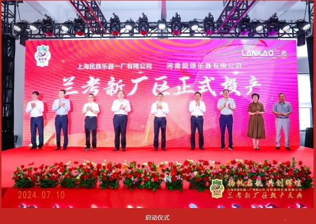 鞭炮齐鸣迎喜事,飘飘彩带舞翩然。中国音乐学院党委书记王旭东,开封市委常委、兰考县委书记陈维忠,上海新集体经济合作联社党委书记、主任关坚韧,开封市政协副主席张志刚,中国乐器协会专职副理事长孙瑞勇,中国民族管弦乐学会会长吴玉霞,海通证券股份有限公司投资银行委员会董事总经理赵夏冰,上海民族乐器一厂有限公司董事、顾问王国振,上海民族乐器一厂有限公司总经理周力等9位领导共同启动兰考新厂区的投产!