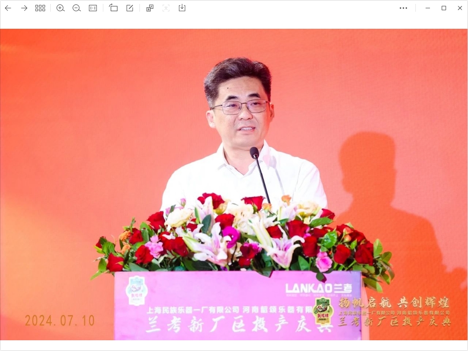 陈书记表示,这次上海民乐一厂兰考新厂区的投产,是双方二十多年携手同行结下的友谊之果、信任之果,必将助力兰考民族乐器产业迈向更高发展阶段,也为中国民族乐器制造业的蓬勃发展种下了无限的希望与未来。