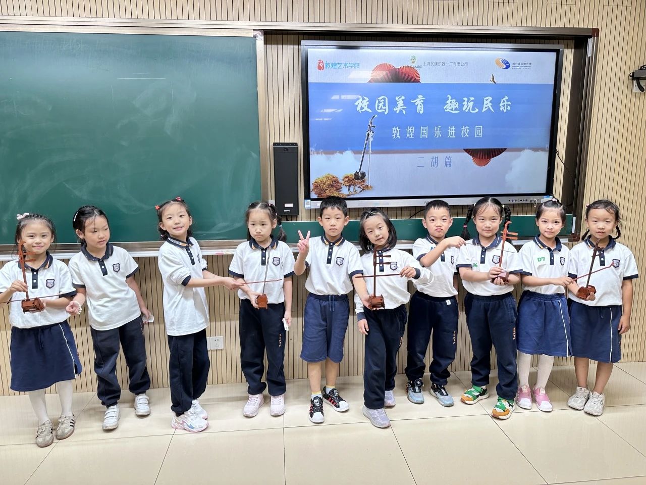 9月23日,“校园美育,趣玩民乐——敦煌国乐进校园”二胡篇在闵行实验小学春城校区顺利举行。此次活动不仅为师生们搭建了一个近距离感受中华传统音乐魅力的平台,更以新颖有趣的方式激发了一年级新生们对民族乐器的浓厚兴趣,让古老的二胡艺术在校园内焕发出新的活力。