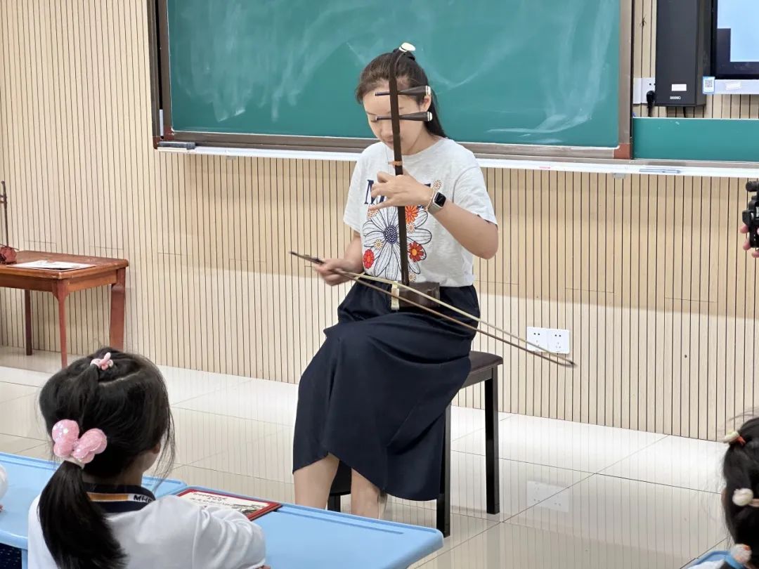 为了让小朋友们对二胡音乐有初步的了解,朱老师演奏了一段《赛马》,随着欢快的节奏响起,小朋友们仿佛看到了草原上骏马奔腾的壮观景象。