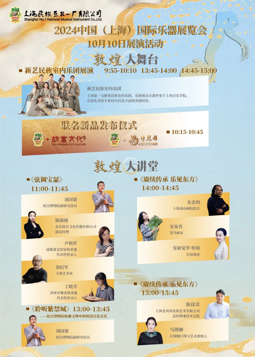 乐器展期间,“敦煌”展位继续开设“敦煌大舞台”和“敦煌大讲堂”两个展演平台,打造圆桌对话、专题讲座、民乐演奏、教学互动等丰富多彩的多元文化空间,30余位民乐名家、艺术名家、专家学者、非遗传承人,以及新艺民族室内乐团演奏家和“敦煌”乐器制作师莅临展位,与观众近距离交流互动。