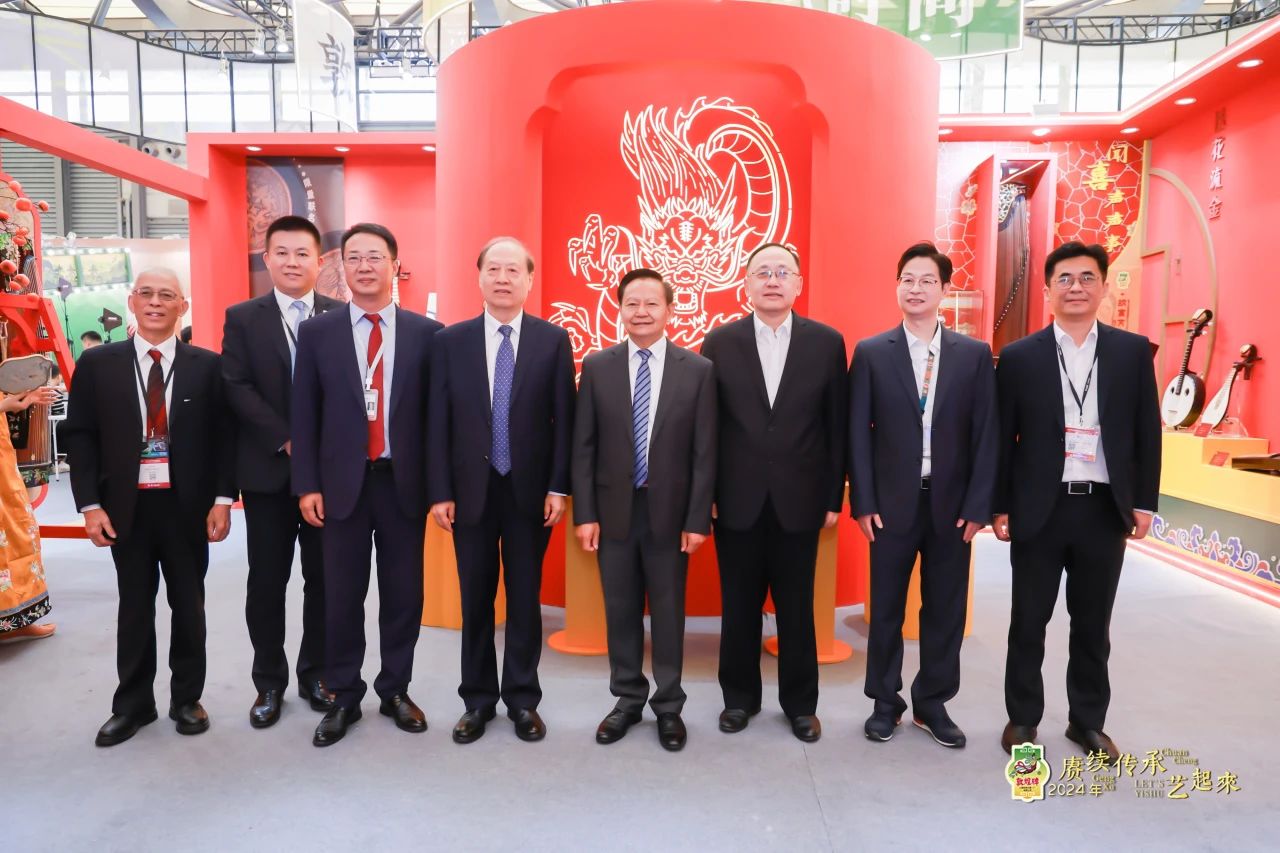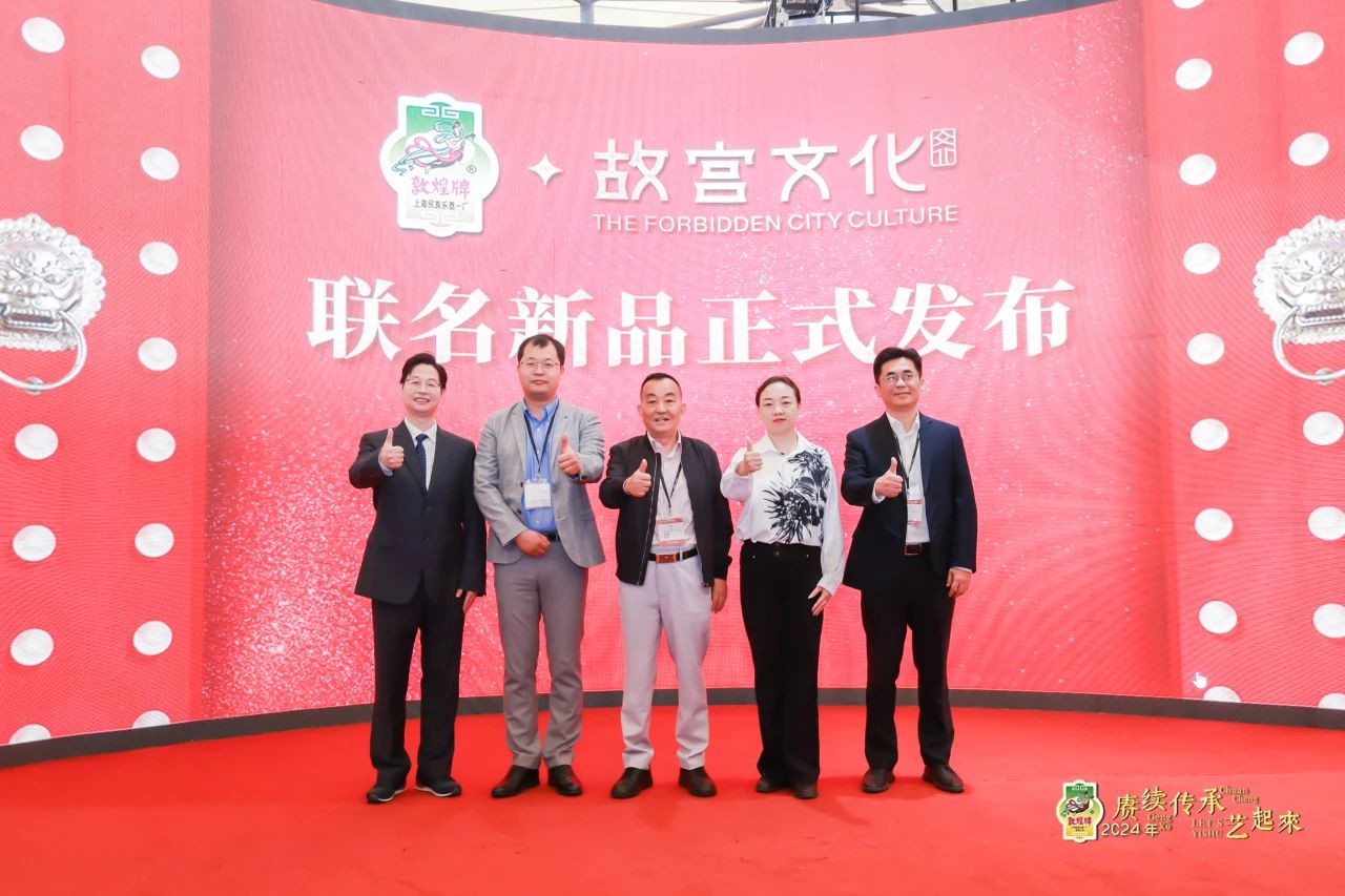 老凤祥股份有限公司副总经理、上海工艺美术有限公司总经理王永忠,上海老凤祥珐琅艺术有限公司总经理兼技术总监陈徐奇,以及上海民族乐器一厂有限公司董事、顾问王国振,董事长莫非、总经理周力,共同上台,为“敦煌×老凤祥”联名新品发布剪彩。