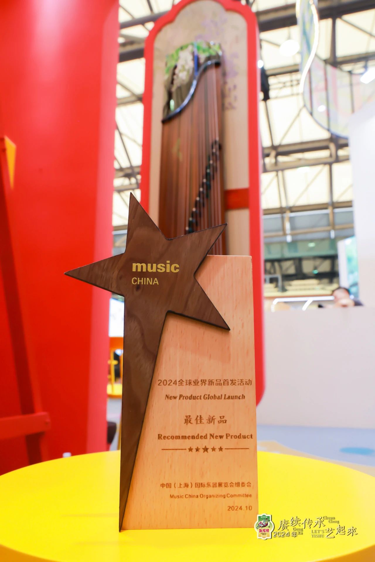 在中国(上海)国际乐器展览会组委会举办的2024Music China全球业界新品首发活动上,敦煌牌“限量联名款紫藤花开古筝”获“最佳新品”殊荣