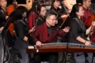 中国音乐学院国乐系主任、古筝演奏家王中山携手乐团,为观众献上节日氛围浓厚的《闹元宵》。他的演奏情感丰沛、技巧精妙,以连续的托劈、快速的轮指和瞬时变化的游弹、按弦的大小颤音等技巧,在欢快抒情的旋律中与乐团展开热烈对话,描绘出元宵节闹花灯时的喧闹和喜庆场面,以极强的音乐表现力赢得了阵阵掌声。